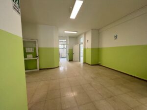 I locali erano in disuso da diversi anni e caratterizzati da ampi spazi (ex aule) che sono stati frazionati mediante installazione di pareti divisorie in cartongesso, opportunamente isolate acusticamente, per la creazione di uffici singoli e/o doppi. E’ stato inoltre necessario procedere all’adeguamento dei servizi igienici ad ogni piano nonché il rifacimento della pavimentazione in linoleum del piano terra e alla decorazione di soffitti e pareti. Allo stesso piano è stato realizzato un box reception al fine di garantire la necessaria privacy per l’operatore, spesso impegnato in telefonate sensibili.