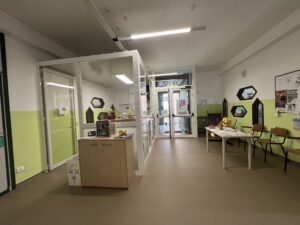 L’edificio è un immobile risalente agli ‘70 – ‘80 del 1900, disposto su tre piani fuori terra, con una superficie calpestabile totale di circa mq 600, ubicato in Susa (TO) e di proprietà delle Suore di San Giuseppe. Il Committente è il soggetto conduttore e ha trasferito nell’edificio sia i propri uffici direzionali del Polo di Susa, sia gli uffici di prossimità territoriali, con la conseguente necessità di creare spazi idonei ad ospitare uffici per il personale, sale per il ricevimento del pubblico e uffici direttivi.